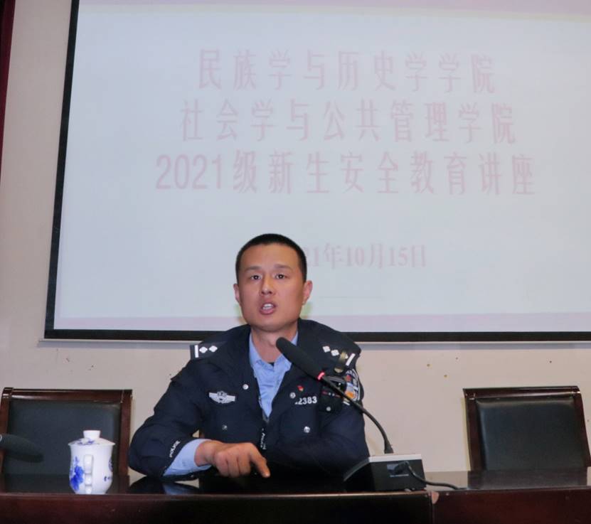为了帮助同学们更好的了解和感知身边的网络安全风险,增强网络安全意识,杜绝网络诈骗的情况发生,2021年10月15日16:40,williamhill官网于15栋圆形会议室举行2021级“新生安全教育讲座”。本次讲座由花溪区松山派出所警官兼校外辅导员赵普林进行相关知识的宣讲。