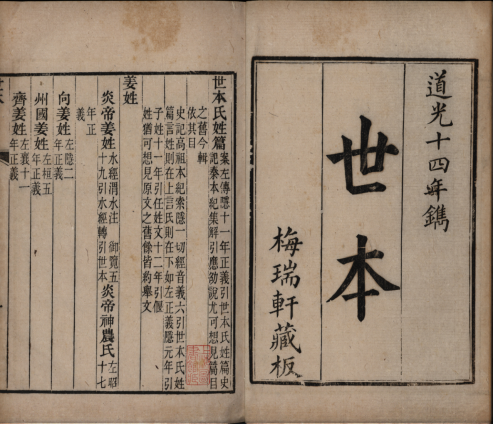 姓氏谱牒类书书名中有“世本”二字的古已有之,例如《史记索隐》《史记正义》均曾引《司马氏世本》,《世说新语》刘孝标注曾两引《挚氏世本》。
