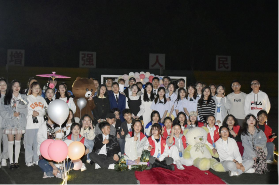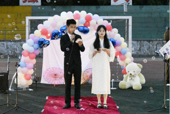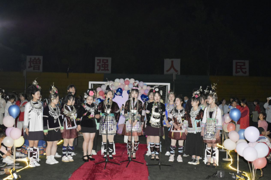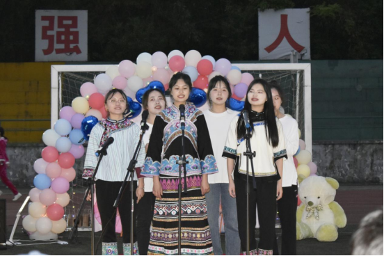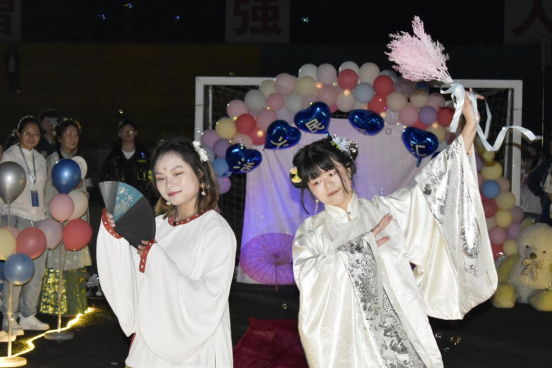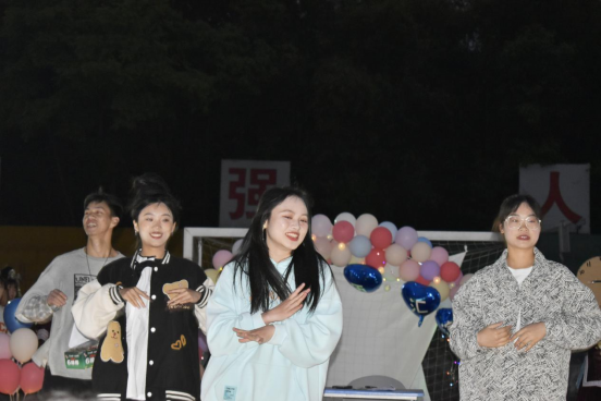 游戏结束后,大家意犹未尽,活动继续。穿着漂亮的民族服饰的侗族苗族姑娘吸引了大家的注意力,同学们都沉醉在《春之歌》和侗族大歌《八月金秋好风光》的美妙歌声里。时装表演《Show出自我》是一群热爱JK、洛丽塔和汉服的女孩们,她们每个人都穿着精致的服装给现场观众带来了一场视觉盛宴。小品《减肥帮》一群女孩用幽默的方式告诉了台下的观众,不要被别人的目光约束自己,要做最好的自己。歌曲《知否知否》、《董小姐骑着斑马去南山》和《遇见+忠贞》用轻柔缓和、悠扬动听的乐曲传递着温暖与力量。《喜迎党的二十大——中华颂》铿锵有力的吟诵,饱含学子们满腔的爱国情怀,祝愿祖国繁荣昌盛。最后,舞台剧《民大永不散场的青春》用新颖的影子演绎了一场校园剧,表达了同学们对老员工活的美好与向往。