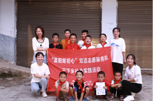 7月21日,williamhill官网“夏阳耀初心”双语志愿服务小队在凯里市舟溪镇新光村向“大中小学”的少先队员宣传中国共产党知识以及普通话的推广。