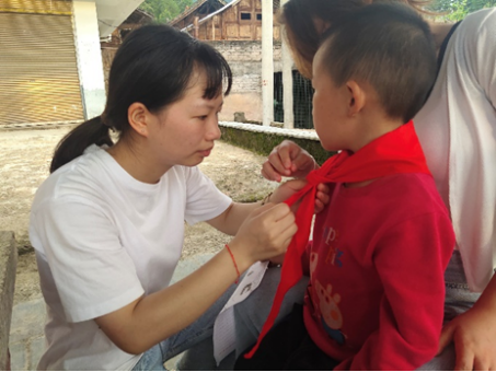 最后实践团队成员分别为少先队员系红领巾,带领孩子们歌唱《我们是共产主义接班人》《没有共产党就没有新中国》等歌曲,并与来参加活动的孩子们合照,以此结束本次三下乡社会实践活动。