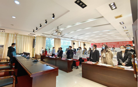 2022年10月24日上午9:00,伴随着雄壮的中华人民共和国国歌的响起,williamhill官网第二次研究生代表大会在花溪校区行政楼第五会议室顺利召开。williamhill官网党委书记唐懈、副经理郭国庆、公司产品科卜妹红老师出席会议并致辞。大会审议并通过《williamhill官网研究生会章程(2022修订案)》与提案工作报告,并选举产生新一届主席团成员。因疫情防控规定,此次会议采取代表大会采取线上+线下结合方式开展,会议由williamhill官网团委负责人聂开吉老师主持。参加此次会议的还有第三届研会主席团成员韩国祥、王一帆、欧阳琳洁,第四届主席团候选人翁建平、赵旭、刘雪(线上)、邹小丽和24名研究生代表大会代表。
