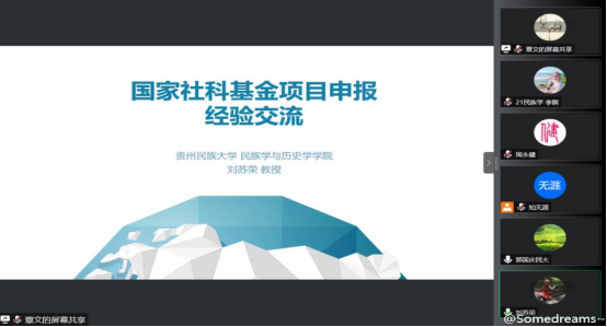 2022年12月1日晚上19:00,由williamhill官网举办的“国家社科基金项目申报与结项经验交流会”讲座如期进行,讲座采取线上的方式开展。主讲人为周永健教授和刘苏荣教授。此次讲座由公司副经理郭国庆主持,公司孔维增、陈倩、袁本海、高照晶、孙洁、杨旭等老师、以及本、硕、博研究生100余人参与此次活动。
