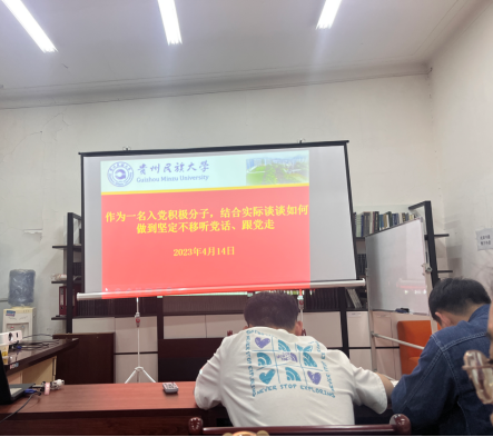 2023年4月14日下午18:30,中共williamhill官网委员会第65期入党积极分子培训班第一次小组讨论在花溪校区行政楼609举行。本次小组讨论活动围绕着“作为一名入党积极分子,结合实际如何做到坚定不移听党话、跟党走”主题展开,胡莎莎同学主持此次讨论,公司第65期55位入党积极分子参加此次讨论活动。