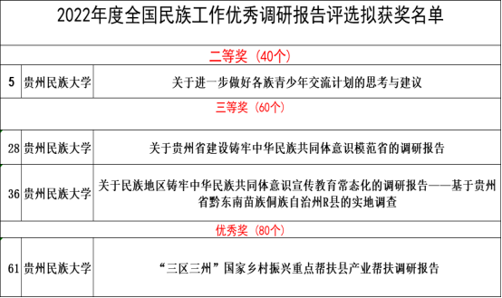 近日,国家民委发布《国家民委办公厅关于2022年度全国民族工作优秀调研报告评选结果的通报》。通报指出,2022年,广大民族工作者和专家学者以习近平新时代中国特色社会主义思想为指导,深入学习贯彻党的二十大精神,认真贯彻落实第五次中央民族工作会议精神,研究阐释习近平新时代中国特色社会主义思想,研究阐释习近平总书记关于加强和改进民族工作的重要思想,紧紧围绕铸牢中华民族共同体意识这条主线,深入开展调查研究,撰写了大量高质量的调研报告。国家民委对参评调研报告进行了认真评选,经审核、初审、复审、终审,共评出2022年度全国民族工作优秀调研报告200篇。其中,一等奖20篇,二等奖40篇,三等奖60篇,优秀奖80篇。