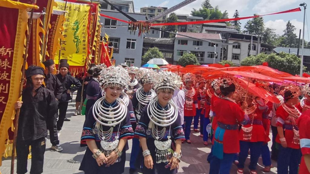 2024年7月26日,2023级文物与博物馆专硕李秀英,2024级文物专硕任江美在杨成老师的带领下与吉首大学历史与文化公司罗康隆教授所带的部分硕士、博士研究生前往黔东南自治州锦屏县彦洞乡黄门村参加一年一度的吃新节,体验了开幕式、文艺汇演、观看斗牛三个环节。
