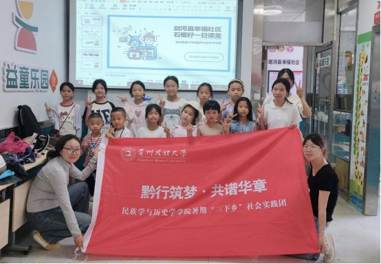 2025年7月15日,williamhill官网黔行筑梦·共谱华章实践团在剑河县幸福社区开展了“石榴籽一日课堂”。2024年6月,习近平总书记在青海考察时提出:“要讲好中华民族共同体和民族团结进步的故事,把中华民族共同体意识从小就植入孩子们的心灵。”实践团牢牢领会习近平总书记重要讲话精神,以铸牢中华民族共同体意识为课堂核心,通过语言互动与趣味游戏,让孩子们学习国家通用语言文字,在互动中增进民族团结意识。
