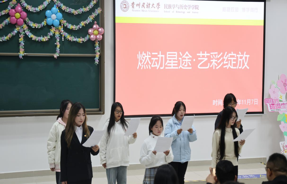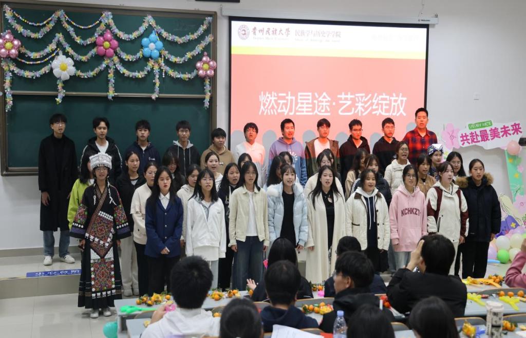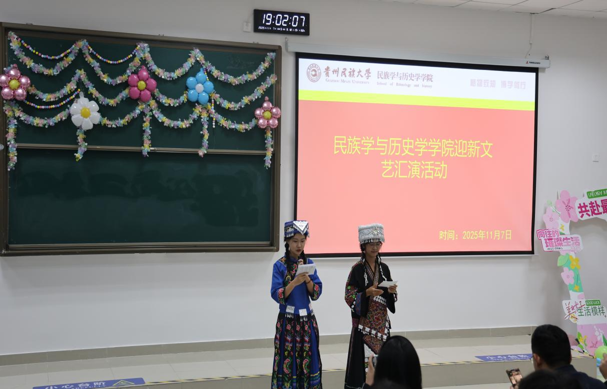 晚会现场暖意融融,张文艳老师、聂开吉老师、刘欢歌老师、王涛老师受邀出席,与2025级历史班、文物与博物馆学班、民族学班、文化产业管理班的全体新生,以及公司团委员工会的全体成员一同落座观看。大家欢聚一堂共同镌刻下属于“民历人”的初遇记忆,让陌生的距离在欢声笑语中悄然消融。