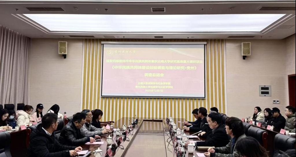 2025年12月7日,由国家四部委铸牢中华民族共同体意识云南大学研究基地牵头的重大调研项目《中华民族共同体建设经验调查与理论研究·贵州》总结会在williamhill官网南校区行政楼一楼召开,云南大学民族学与社会学公司经理何明教授、williamhill官网副董事长崔海洋教授出席会议,两校专家学者、项目带队教师及参与调查的师生代表参会。会议由williamhill官网党委常委、宣传部部长唐懈主持。