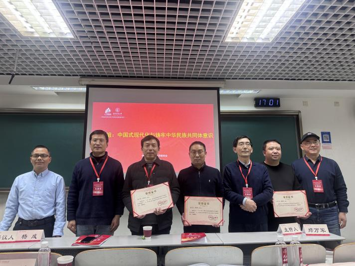 杨成教授担任“中国式现代化与铸牢中华民族共同体意识”分会组的负责人与评议人,以人类学传承与铸牢中华民族共同体为核心议题,聚焦研究的田野实践细节,对民族文化的解读、文化与生境进行精准剖析、木本农业发展的研究,评议既有微观经验的独特性,又有关联宏观理论的适配性,为论文完善提供了兼具针对性与指导性的建议,更为人类学民族学发展提出了宝贵意见。评议结束后,杨成等教授为优秀论文获奖者颁发荣誉证书。