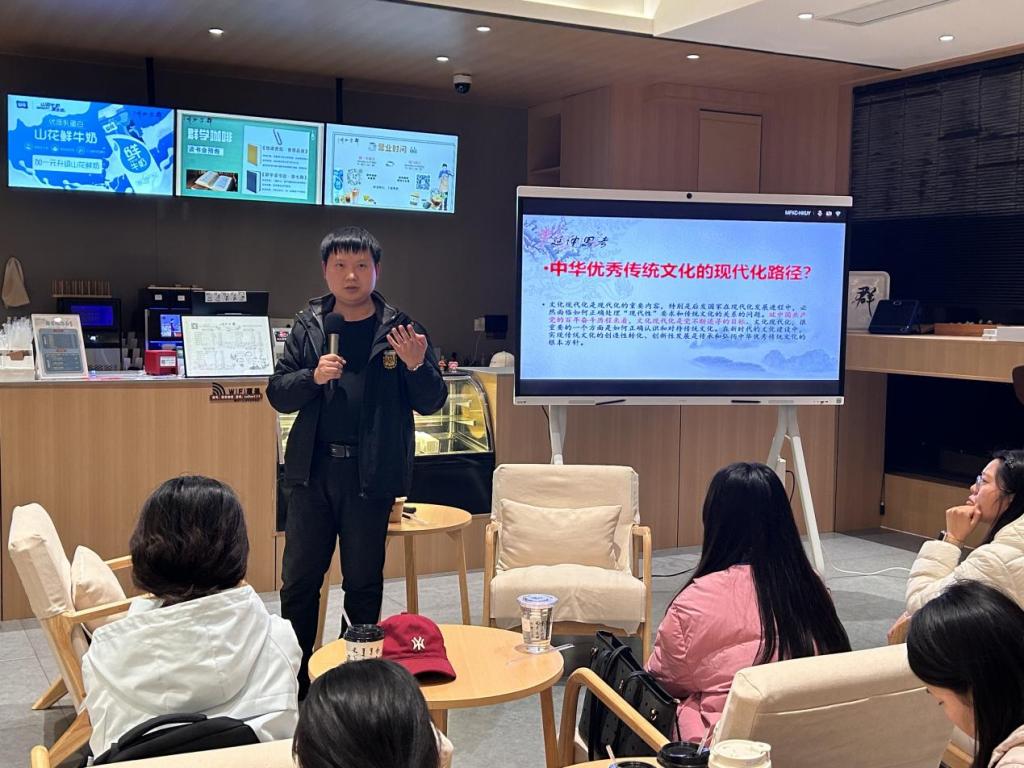 读书会伊始,主持人生动介绍了活动背景、主题与流程,邀请李浩书记致辞。李浩书记生动讲述了公司开办“悦读贵民·青葱品读”读书会的渊源和所寄托的美好愿景,简要阐明了本次活动的核心意义,也为接下来的研读与交流指明了方向。在致辞中,李浩书记对同学们高涨的学习热情深表赞许,并特意为在场同学准备了饮品以表关怀,勉励大家沉浸经典、深入思考,深刻体悟“多元一体”格局的理论内涵。