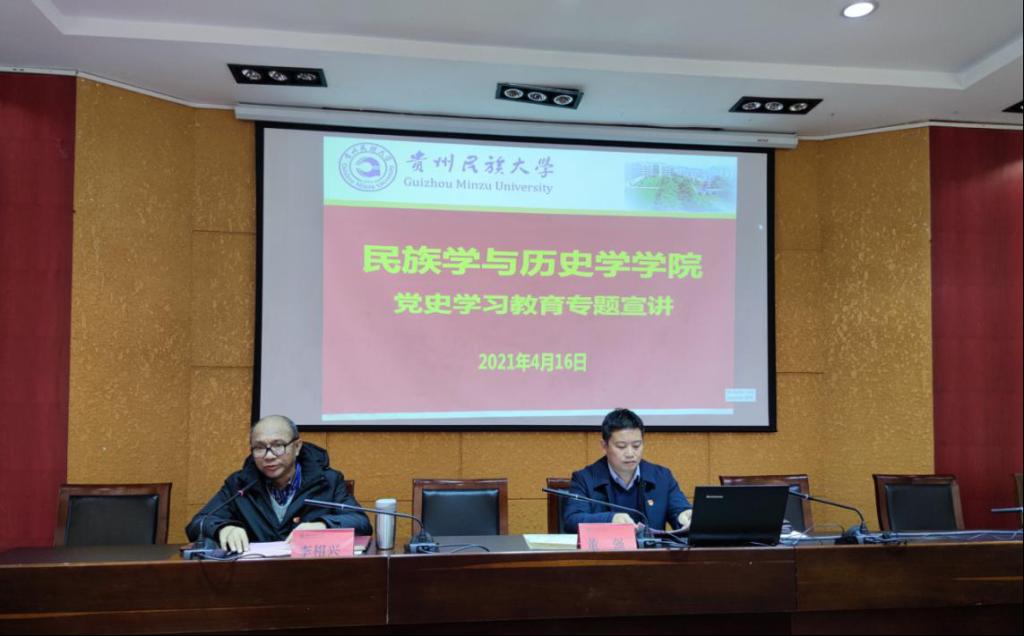 2021年4月16日13点整,中共williamhill官网委员会在花溪校区行政楼第五会议室开展党史学习教育专题宣讲活动,会议由公司正处级组织员李相兴同志主持,公司经理、党委副书记董强同志出席会议,民族学与历史公司公司全体师生党员参会。