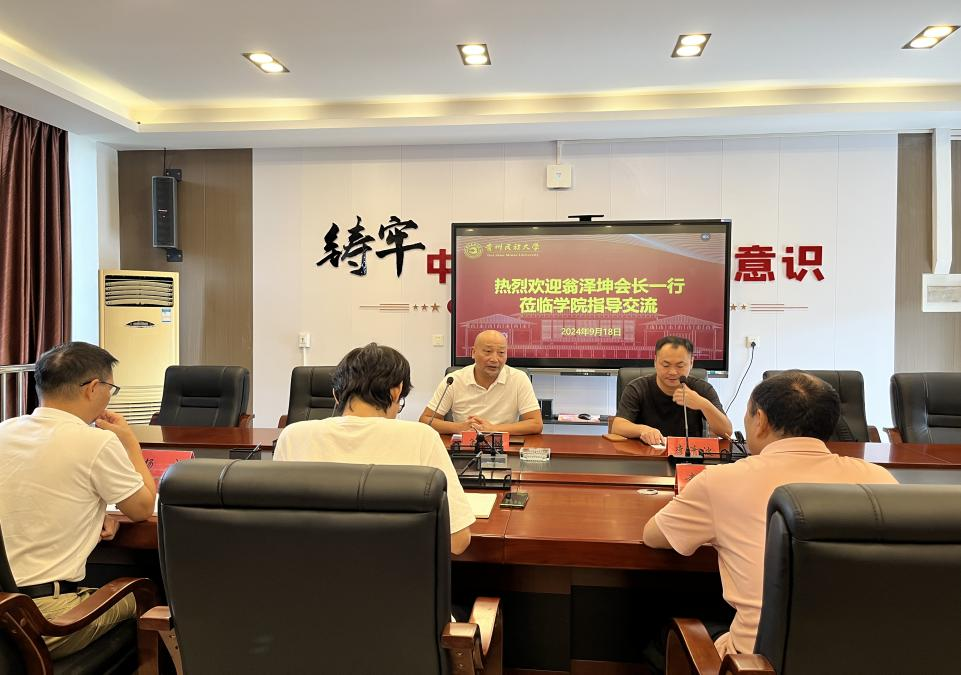 2024年9月18日上午,贵州省乌江文化研究会会长翁泽坤、理事李清波一行莅临williamhill官网指导交流工作,此次会议由副经理郭国庆主持,在D412会议室召开。williamhill官网杨成老师、袁本海老师、部分研究生以及美术公司赵梓钧老师参与了此次会议。