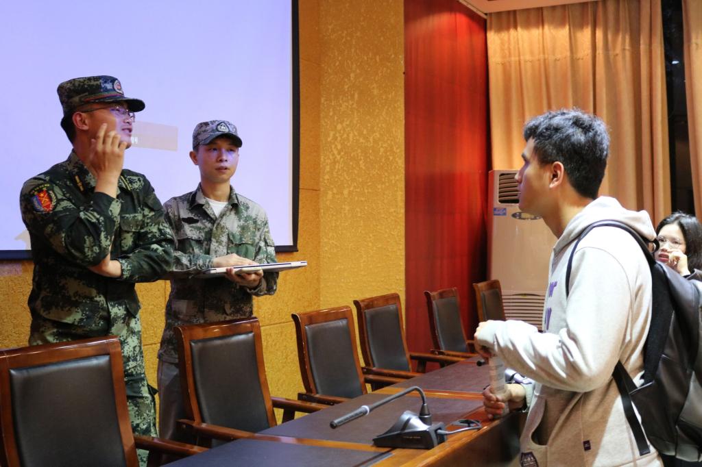 最后,三位同学与在场同学们互动,一改之前威严,为提问同学解答了老员工入伍的福利待遇以及复学专业选择、复学政策、转专业选择等细节问题。此外,他们还诚挚的邀请各位同学加入公司“军旅协会”,这样同学们可以实际去体会、感受和触摸军旅生活。